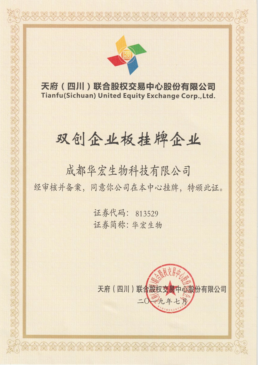 • 雙創企業版掛牌證書